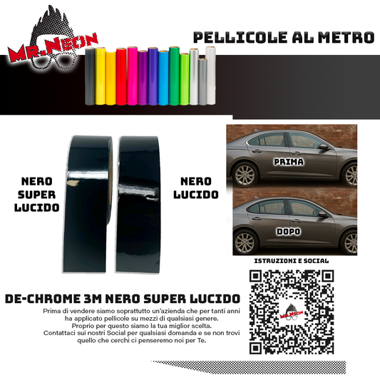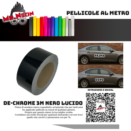 3M De-Chrome Serie 2080 Nero Ultra Lucido HG12 β Pellicola Adesiva 10m x 50mm