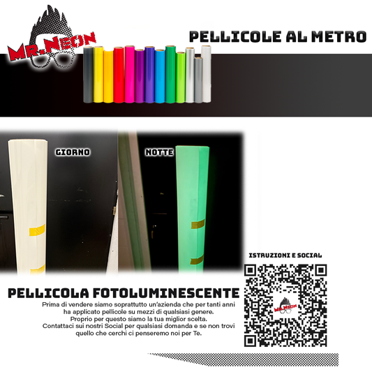 Pellicola Fotoluminescente Glow in the Dark β Adesivo Decorativo e Segnaletico | Taglio 30Γ30 / 50Γ50 / 1Γ1 m | Mr.Neon