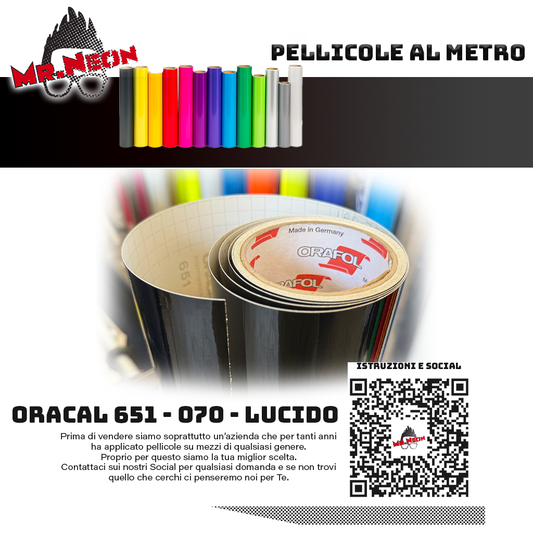 Pellicola Oracal 651 Nero Lucido 070 β Vinile Adesivo Monomerico a Metraggio