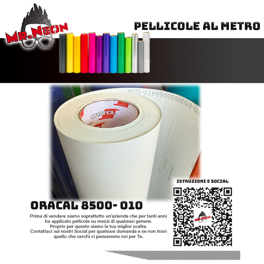 Pellicola adesiva Oracal 8500 Bianco 010 β Vinile adesivo a metraggio