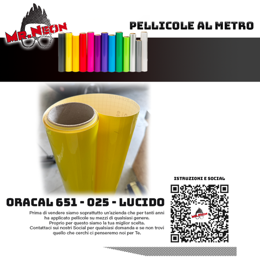 Pellicola adesiva Oracal 651 Giallo 025 β Vinile adesivo a metraggio