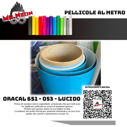 Pellicola adesiva Oracal 651 Ciano Pieno 053 β Vinile adesivo a metraggio