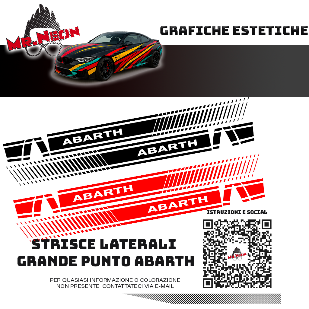 Kit Adesivi Fiancate compatibile con Fiat Grande Punto Abarth – Bande Laterali con Scritta Abarth | Oracal 651